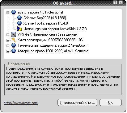 Скачала вчера оф версию Avast Professional 4.8 подставила для регистрации один из приведенных ниже ключей : W6890026R9972A0911-C1KS2Y2F и мне продлило аж на 2190 дней. Сегодня обновило нормально базы, и срок действия все теже 2190 дней осталось. Чудеса прям какие-то, классно, поживем - увидим, что будет дальше.