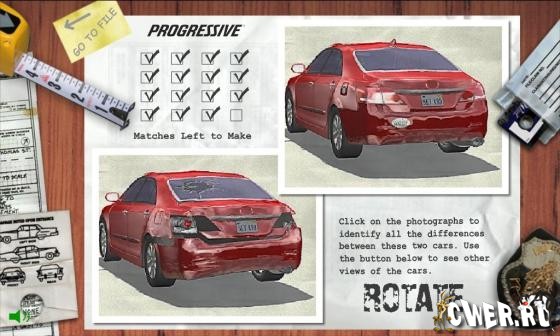 Вы - агент в специальной расследовательном институте. Ваша задача состоит в том, чтобы исследовать подозрительные ситуации связанные с автострахованием. Хоть игра и флеш, и весит мало, в ней присутствует такие жанры как поиск, логические задачи, например: собрать паззл, или найти различия.