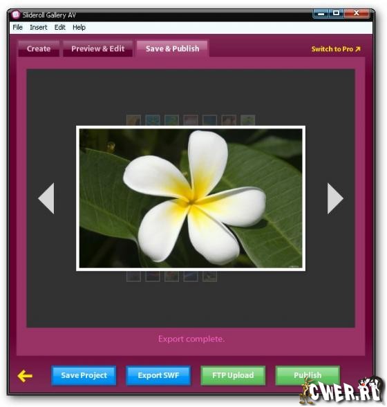 Slideroll Gallery AV is a nice and easy-to-use program that makes publishing your own photo and video gallery really easy and fun. That's it, no big whoop. Gallery AV creates great-looking, customizable Flash photo and video galleries. Simply drag and drop your photos and videos onto the creator. PC users can even record your own audio narration! bSlideroll Gallery AV can save galleries to your computer, upload to Slideroll, or upload to your web site via FTP. The galleries that are exported are designed to work at almost any size, so you can embed the slideshow in a blog page or within an HTML table on a more complex page.