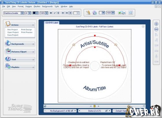 SureThing CD/DVD Labeler относится к разряду профессиональных утилит, помогающих создать обложку для только что записанного CD или DVD. Однако если сравнивать эту программу с похожими продуктами, то разница окажется огромной. Это все равно что, например, сравнивать Photoshop и Paint.