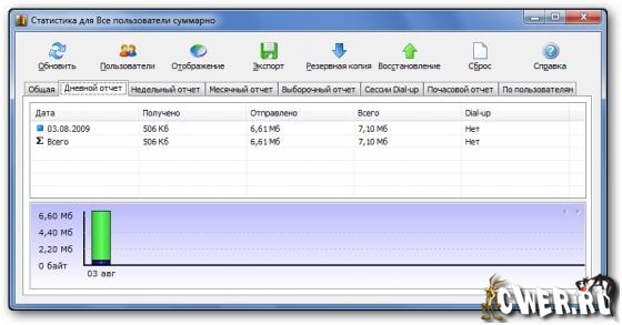 NetWorx - бесплатная утилита для учета интернет-трафика и мониторинга скорости Интернета на вашем компьютере. Программа работает с любым кабельным или беспроводным подключением, а также модемом, предоставляя удобную статистику, отчеты и графики. Вы сможете измерить реальную скорость и загрузку вашего интернет-подключения, просматривать ежедневные, недельные и месячные отчеты и получать уведомления о перерасходе трафика. Интересным применением NetWorx можно назвать и контроль за сетевой активностью ПК. Если объём трафика вдруг возрос - скорее всего, в системе поселился вирус или троян.