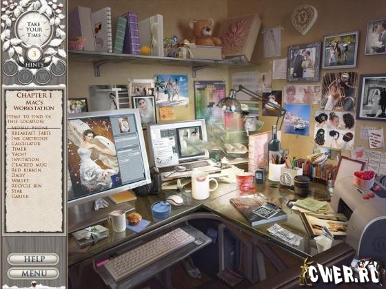Прохождение бетки рассчитано не на время, а на 3 главы (примерно около часа). Выбираем режим на время или без. Даются 3 подсказки, чтобы получить еще одну, нужно в каждой сцене собирать по 4 буквы (vows). При использовании подсказки предмет выбираем сами при помощи лупы. При частом пустом кликанье одну подсказку отнимают. Периодически дают задания (подобрать торт, составить букет и т.д.). Привычных мини-игр нет. Великолепная графика, что не умаляет сложность поиска. Игру сопровождает прекрасная романтическая музыка.