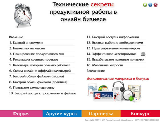 Скачать видеокурс "Технические секреты продуктивной работы в онлайн бизнесе" (1,71 ГБ):