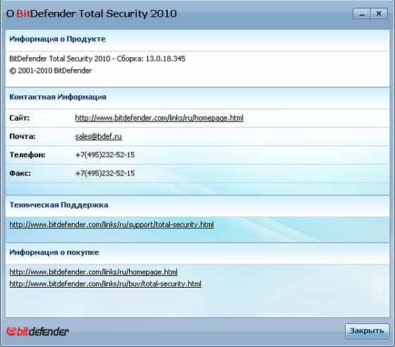 Скачать программу BitDefender Total Security 2010 32bit (154.5 МБ):
