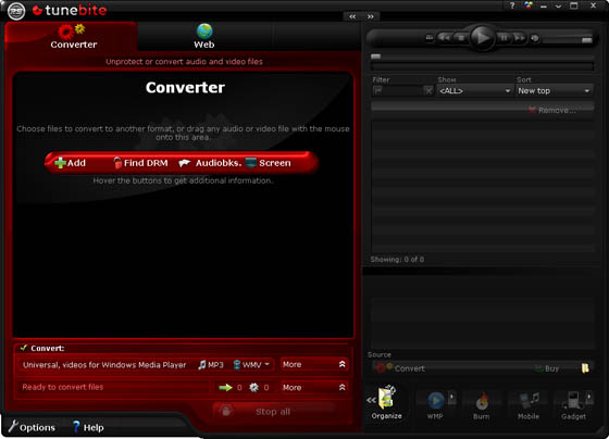 Tunebite Platinum позволяет конвертирать и копировать защищенные музыкальные и аудио-книжные файлы из WMA, M4B и M4P форматов в незащищенные MP3, WMA, WMA Pro, OGG и WAV аудио файлы.