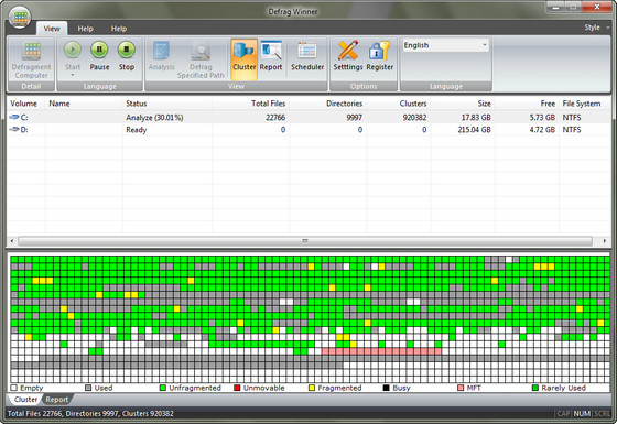 Разработан для быстрой оптимизации. Данная программа предоставляет быстрое, продвинутое решение для дефрагментации дисков, с предоставлением отчетов до и после дефрагментации. Используя Defrag Winner, вам больше не потребуется беспокоиться о состоянии фрагментации вашего диска. Более того, данная программа будет проводить полную диагностику вашего жесткого диска, потом будет дефрагментировать и повышать производительность диска в один щелчок мыши за несколько минут.