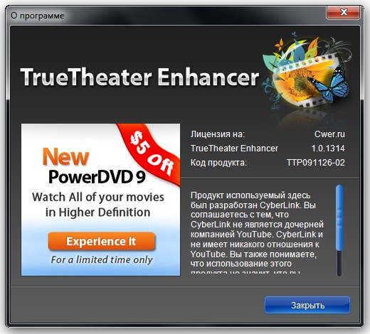 Скачать программу CyberLink TrueTheater Enhancer 1.0.1314 + Rus (30 МБ):