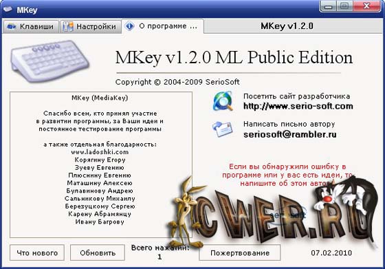 Скачать программу MKey 1.2.0 Final (1,22 МБ):