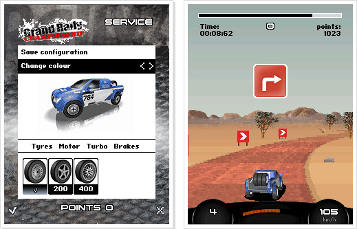 Опасные гонки по пересечённой местности. Переходите из одного этапа ралли в другой и улучшайте свои навыки вождения! Размеры экранов: 128x160, 176x208, 240x320.