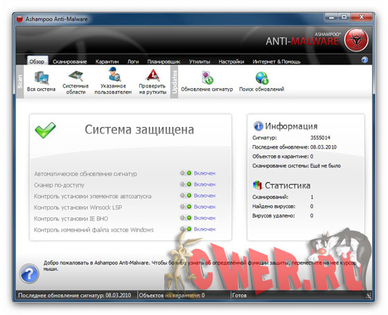 Еще больше особенностей Ashampoo Anti-Malware: