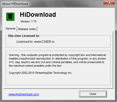 Скачать программу HiDownload Pro 7.75 (2,19 МБ):