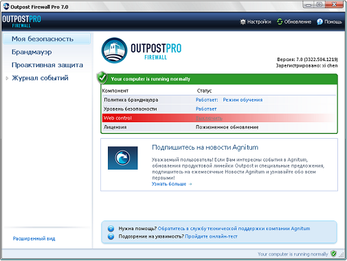 Скачать программу Outpost Firewall Pro 7.0 (3322.504.1219.395) Beta x64 (40 МБ):