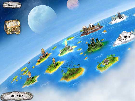 в игре 3 секретных уровня. 1. собрать все кристаллы и восстановить радужную дорогу 2. накормить пингвинов и получить карту 3. на острове поклонения отправить разведчиков в правый нижний светящийся красным круг. Когда он позеленеет несколько раз ткнуть в центральную пирамиду. Затем отправить их в один из верхних кругов, во второй верхний послать воинов, в любом нижнем начать стройку а в последний затащить Аруку или шамана. Получите карту. Еще на острове в волшебником в фонариках дополнительно выставить последовательность так как на Острове поклонения расположены маленькие храмы (красный-синий-желтый-лиловый-зеленый), и получите сразу 3 сундука с драгоценностями