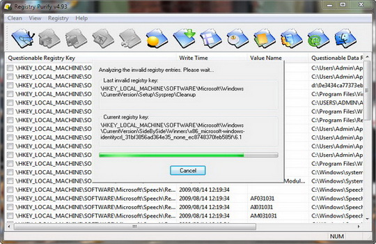 - New Scan Engine. Registry Purify improves analyzing speed over 50% than normal algorithm by using new SharpANA Engine. Meanwhile, SharpANA Engine reduces reading of hard disk evidently, which protects your hard disk effectively. The proper use of multithread technology, reduces consumption of system resources.