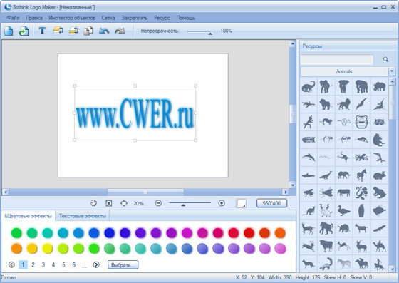 - Позволяет применять различные эффекты для заданного логотипа: изображения и тексты.