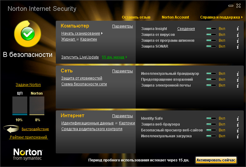 перепробовал ВСЕ нормальные антивири. просто все. этому равных нет... ни по производительности, ни по нагрузке на систему... раньше был тяжёлым, непонятным, тупым и странным. эта версия 2010 просто сок! если не нужен фаерволл, ставьте просто NAV. в нём есть всё, кроме фаера... буду покупать... однозначно...