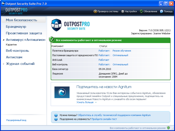 Вне зависимости от того, кто вы – новичок или эксперт в компьютерной безопасности, Outpost Security Suite Pro просто настраивается для ваших потребностей. Используйте встроенную помощь настолько, насколько вам это необходимо; автоматизируйте защиту настолько, насколько вам это необходимо; воспользуйтесь также преимуществом системы ImproveNet, вобравшую в себя опыт других пользователей. Интерфейс программы интуитивно ясен, так что какие бы вы настройки ни выбрали, вы получите требуемый вам уровень защиты.