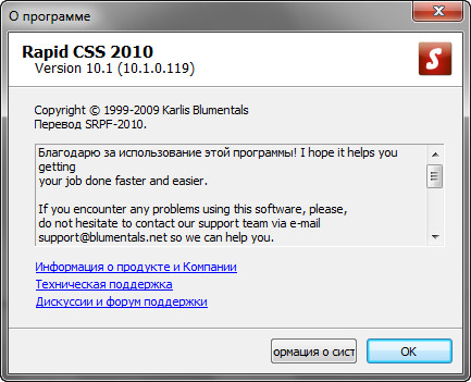 Скачать программу Blumentals Rapid CSS 2010 v10.1.0.119 + Rus (7,55 МБ):