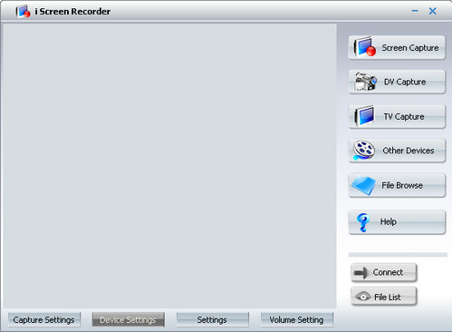 Пользовательский интерфейс утилиты i Screen Recorder был основан на двух китах: внешняя привлекательность и быстрый доступ ко всему функционалу программы. i Screen Recorder имеет три основные кнопки управления, которые находятся в основном окне приложения.