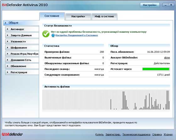 BitDefender Antivirus 2010 надежный антивирус, эффективно защитит ваш компьютер от всех типов вредоносных программ (вирусов, троянов, программ-шпионов, руткитов и т.д.), фишинг-атак и кражи личных данных, не замедляя работу компьютера.