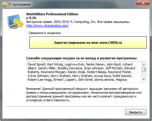Скачать программу WinUtilities Pro 9.76 Rus (7,37 МБ):