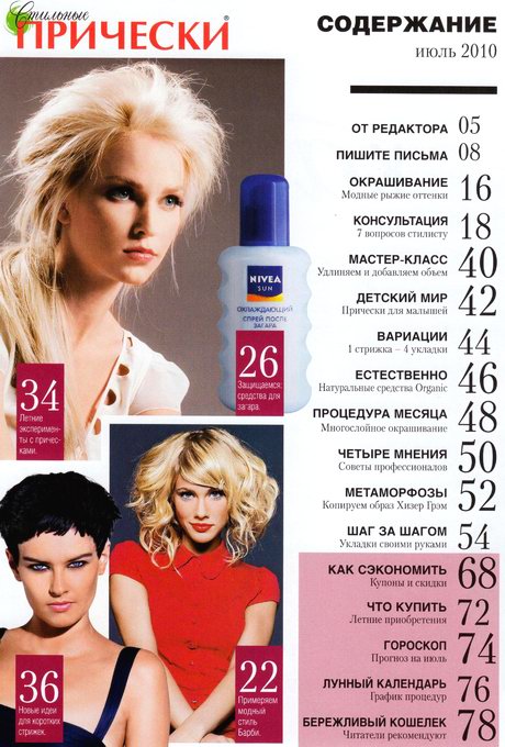 Ежемесячный практичный журнал для женщин, следящих за своей красотой. Издание представляет большой выбор причесок, советы по уходу за волосами, лицом, телом, рекомендации стилистов и косметологов, интервью и рассказы знаменитостей.