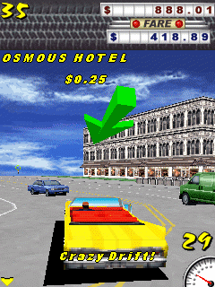 Игра о водителе такси, пассажирах, которым надо добраться в самые удаленные точки города за минимальное время, и таймере, который невозможно остановить. Полный хаос на улицах, безумный таксист, с безумной скоростью доставляющий до мест назначения безумных пассажиров - что может быть интересней? Мир скоростных машин, экзотических городов и быстрых денег ждет вас! Размеры экранов: 176x208, 176x220, 240x320, 320x240.