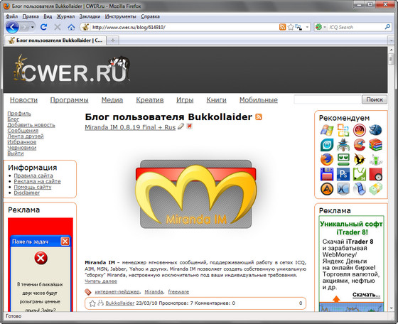 Скачать программу Mozilla Firefox 3.6.8 Final (8,42 МБ):
