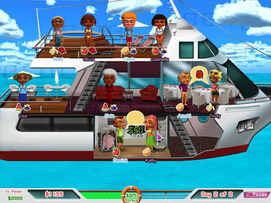 Новая игра принеси-подай в которой вам нужно помочь отдыхающим найти свою идеальную пару по взаимным интересам. Удачная попытка приведет к свадьбе.