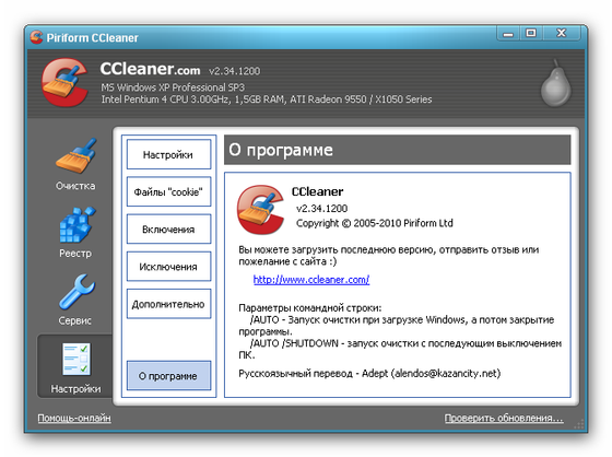 Скачать программу CCleaner 2.34.1200 (3,26 МБ):