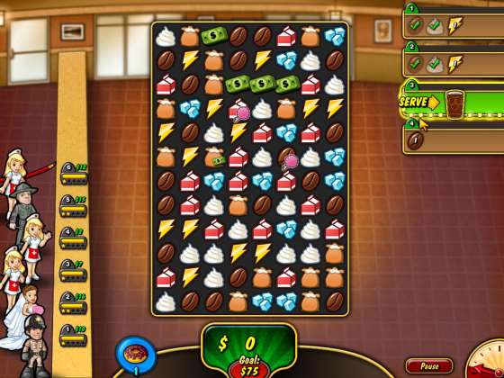 Coffee Rush 2 - продолжение игры Coffee Rush жанра match-3 с забавной графикой.