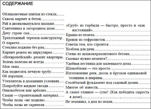 Оригинальные идеи помогут вам быстро построить дом из самана, арболита или горбыля; надежно застеклить лоджию без рам; изготовить дешевый утеплитель из бумаги; обновить и покрасить полы и стены. Профессиональные советы по работе с цементом, кирпичом, деревом и другими строительными материалами будут полезны всем, кто хочет своими силами качественно и недорого построить загородный дом или дачу, отремонтировать квартиру.