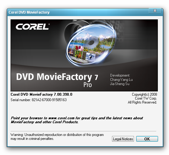 Скачать программу Corel DVD MovieFactory Pro 7.00.398 Rus (274,93 МБ):