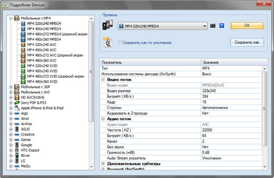 - MP4 файлы для форматов iPod/iPhone/PSP/BlackBerry