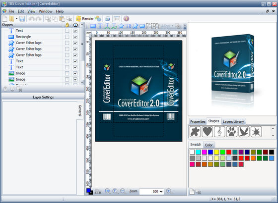 TBS Cover Editor - программа для создания и редактирования трехмерных обложек коробок для ваших представляемых продуктов. Основная отличительная особенность TBS Cover Editor от других подобных программ, заключается в том, что коробка во время редактирования представлена как развёртка всех сторон одновременно с отображением ее готового трехмерного вида мгновенно меняющегося согласно вашего редактирования. Ещё одно не мало важное достоинство редактора - это базово заложенный богатый набор шаблонов вида коробок. Помощник программы после выбора вами понравившегося шаблона и ввода имени продукта и фирмы, поведет вас за руку до конечного результата - готовой коробки.