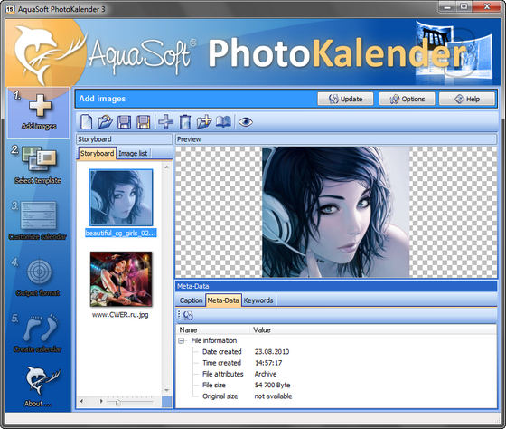 AquaSoft PhotoKalender - одна из самых мощных программ для создания календарей. Можно создавать ежегодный, ежемесячный, еженедельный и даже ежедневный календарь. Программа имеет большое количество встроенных шаблонов, а также редактор, в котором вы можете изменить существующий шаблон или создать свой собственный. Программа содержит базу данных по "красным дням" календаря и дает возможность создавать собственный список праздников. Можно делать календари на разных языках, в том числе и на русском. Готовый календарь можно распечатать или сохранить в PDF, JPEG, GIF, TIFF, LWF, PNG, TGA, BMP, PCX или же создать календарь для рабочего стола с автоматической сменой фоновых изображений.