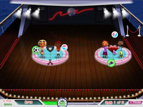 Любовь На палубе! Днем Вам предстоит сводить пассажиров чтобы найти их совместные интересы. А вот ночью позвольте вашим парам потанцевать и быть может Вы станете свидетелем рождения нового курортного романа. Заработайте денег на удивительные модернизации для Вашего судна и в конечном счете расширьте Ваш флот большими лайнерами. Проявите настоящие способности Пассажирского Директора!