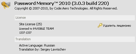 Скачать программу Password Memory 2010 v3.0.3 Build 220 (8,6 МБ):