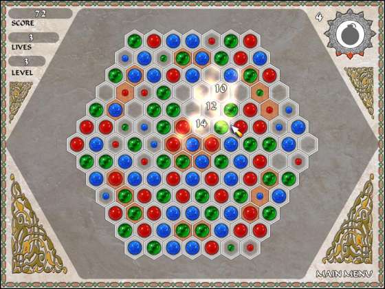 Игра в стиле старых добрых Lines. Отличий немного: большие уровни с множеством фишек, с поля убираются одноцветные группы по три и больше, несколько дополнительных элементов геймплея, таких как бомбы. И как всегда, стильная графика и приятная музыка.