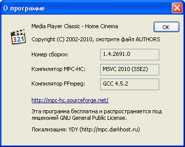 Скачать программу Portable Media Player Classic HomeCinema 1.4.2691.0 (13,62 МБ):