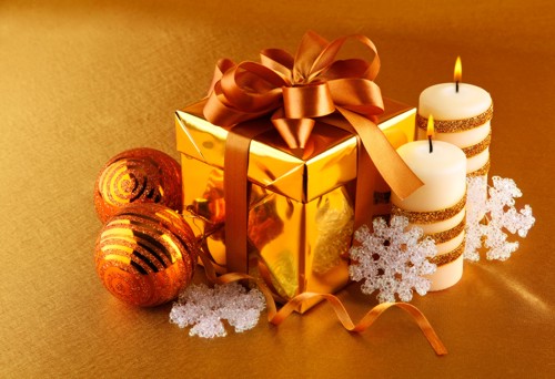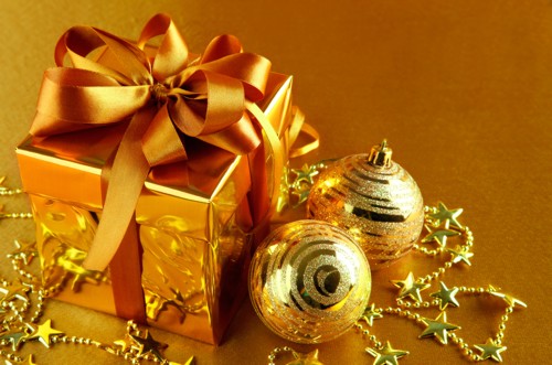 Скачать растровый клипарт Christmas Gift in Gold Box (31.15 МБ):