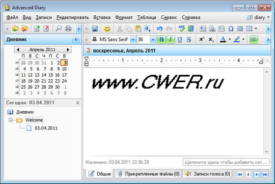 Скачать программу Advanced Diary 3.0.2 (10,56 МБ):