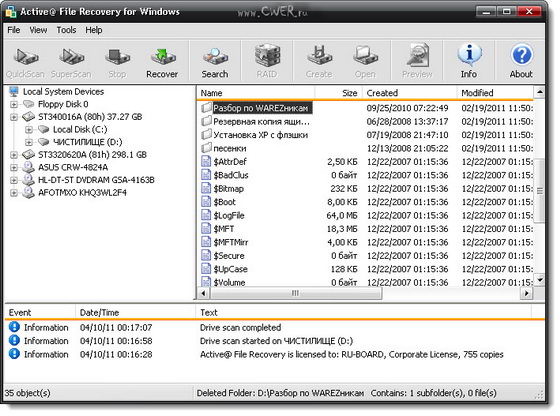 Active@ File Recovery - легкий в использовании, безопасный и эффективный инструмент для восстановления потерянных файлов. Программа обеспечивает восстановление данных в результате случайного удаления, повреждения, вирусной атаки или форматирования. Поддерживает работу с файловыми системами FAT12, FAT16, FAT32, NTFS, NTFS5 и NTFS+EFS.