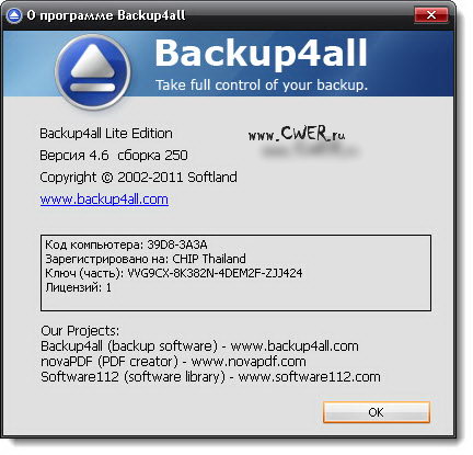 Скачать программу Backup4all Lite 4.6 Build 250 (18,49 МБ):