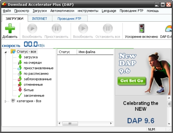 Скачать программу Download Accelerator Plus 9.6.0.7 (12,94 МБ):