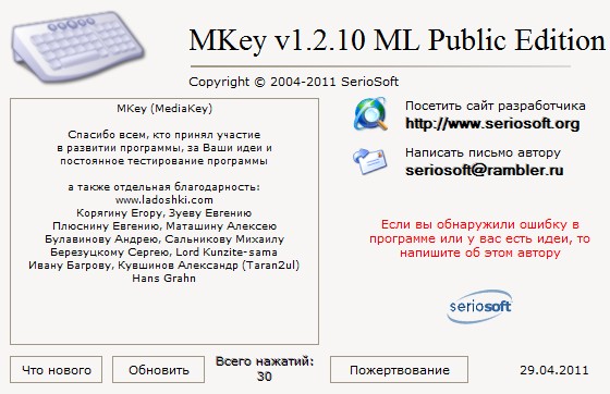 Скачать программу MKey 1.2.10 Final (1,30 МБ):