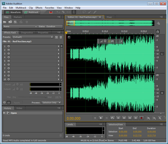 Adobe Audition – профессиональный инструмент для работы с аудио-файлами, предназначенный для специалистов в области обработки аудио и видеопродукции. Adobe Audition предлагает неограниченные возможности микширования, редактирования, создания мастер-копий и обработки звуковых спецэффектов. Продукт совмещает гибкость технологического процесса с предельной простотой в использовании и позволяет создавать разнообразную аудио-продукцию высочайшего качества.