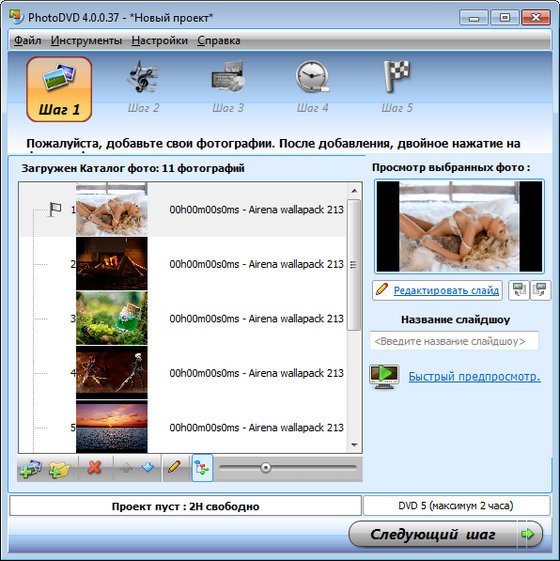 VSO PhotoDVD - программа для создания анимированных cлайд-шоу для стационарных DVD-плееров. Утилита очень проста в использовании, позволяет использовать файлы в форматах JPG, GIF, BMP, ANI, PCX, EMF, WMF и т.д., в качестве сопутствующего саундтрека можно брать музыкальные файлы MP3, WMA, OGG, MPC, WAV и APE. VSO PhotoDVD поддерживается запись созданных cлайд-шоу на DVD-R/RW, DVD+R/RW диски, умеет работать с файлами, созданными в графических редакторах (таких как Alias, Autodesk, Kodak Photo-CD, Paintshop Pro, Photoshop и т.д.). PhotoDVD представляет особый интерес тем, что работает с форматами множества программ для работы с графикой, в том числе форматами Alias, Autodesk, Kodak Photo-CD, Paintshop Pro, Photoshop и т.д. В последней версии представлен новый алгоритм изменения размера изображения, расширена функциональность режима предварительного просмотра модуля проигрывателя и многое другое.