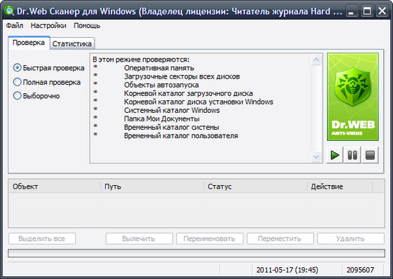 Обновился популярный сканер Dr.Web 6.0 версии для Windows, позволяющий с большой долей вероятности обнаруживать неизвестные вирусы, руткиты, троянские программы, шпионское ПО и разного рода вредоносные объекты. Программа допускает автоматическую загрузку из Интернета новых баз данных вирусов.