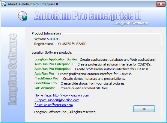 AutoRun Pro Enterprise II - это мощный визуальный инструмент для создания интерфейсов авто-загрузочных меню и презентаций профессионального уровня для CD/DVD. Это самый простой способ создания и редактирования таких интерфейсов в среде WYSIWYG (получаешь то, что видишь) - клик, перемещение и просмотр результата. Всё просто и быстро!
